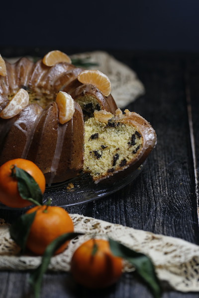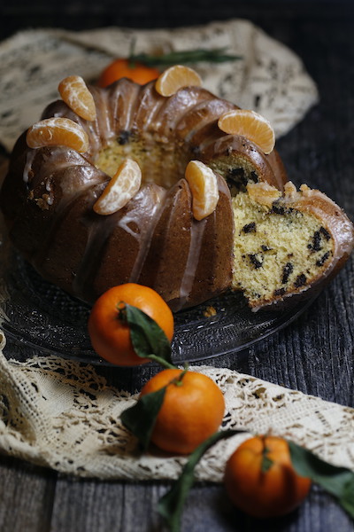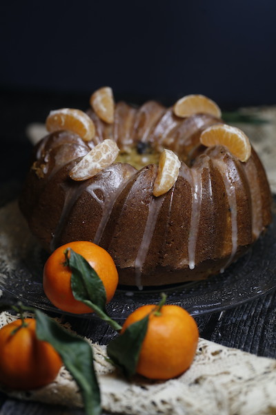 Préparer le glaçage en mélangeant le sucre glace et le jus de mandarine. Le verser sur le gâteau.