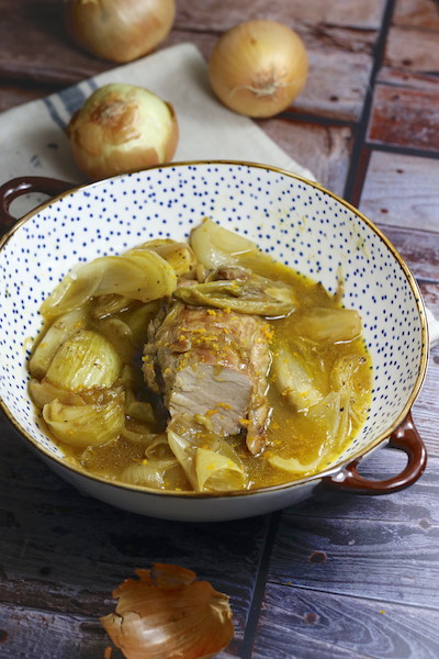 Préparation : 20 min Cuisson : 40 min Pour 4 personnes : -1 filet mignon de 600 g environ -4 endives -4 oignons -1 orange bio -60 cl de bouillon de volaille -20 de beurre -Huile d’olive -Sel, poivre Éplucher les oignons, les couper en 4. Laver les endives, éliminer les premières feuilles si nécessaire et les couper en 4 également. Laver l’orange, la zester et la presser. Faire dorer le filet mignon dans un filet d’huile d’olive. Saler, poivrer. Dans une autre sauteuse, faire revenir les endives dans le beurre, saler, poivrer. Ajouter le filet mignon, les oignons, le bouillon, le zeste…