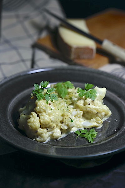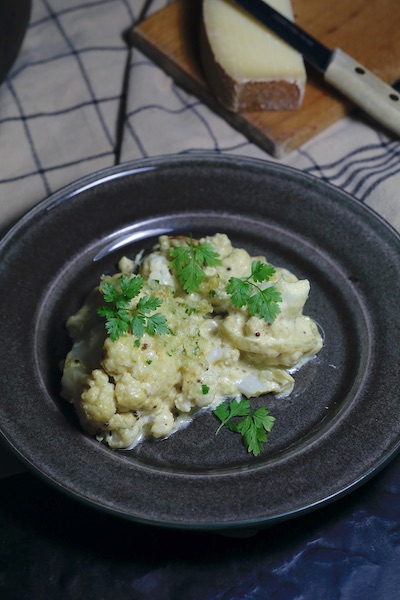 Chou-fleur gratiné à la crème de moutarde et aux épices