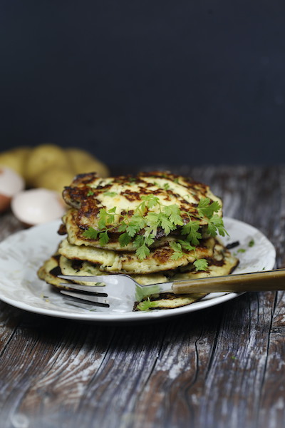 Cuire la préparation en formant des galettes dans une poêle chaude graissée et égoutter sur un papier absorbant avant de déguster.
