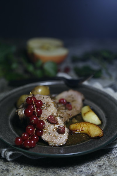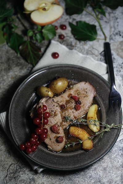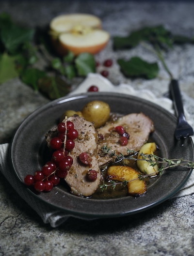 Cuissot de chevreuil de sept heures aux épices deux pommes et aux groseilles