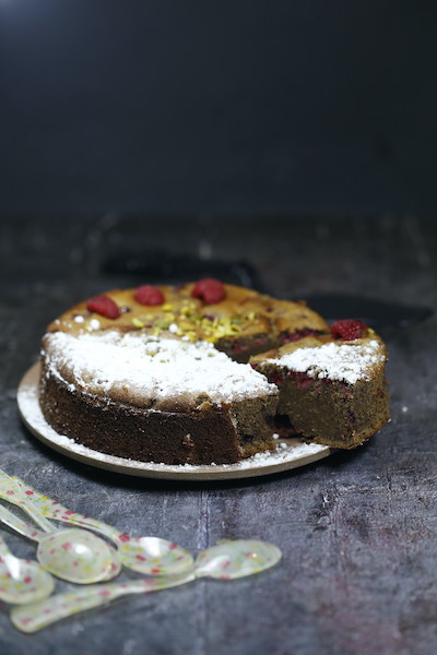 Incorporer les framboises et verser dans un moule graissé (de 21cm).