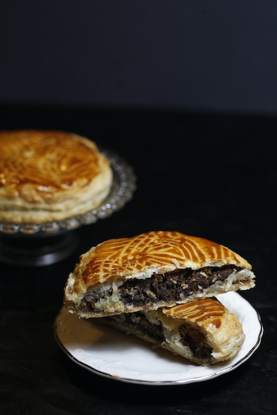 Fouetter le jaune d’œuf et dorer les galettes en perçant une cheminée au centre. Réserver au froid encore 25 à 30 min.