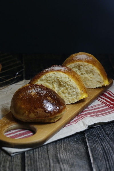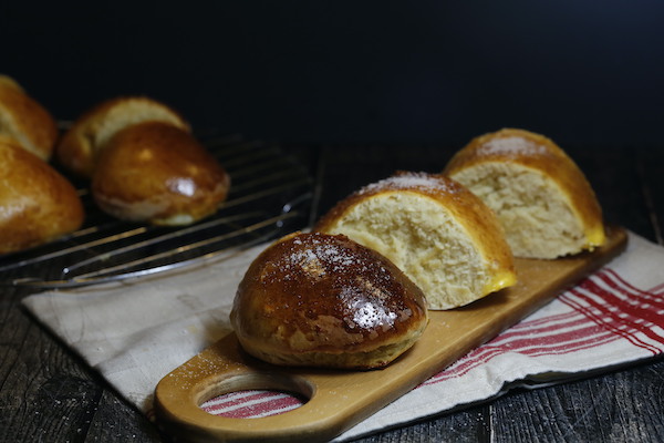 Les saupoudrer de sucre à la sortie du four et les séparer à l’aide d’un couteau pour les déguster.