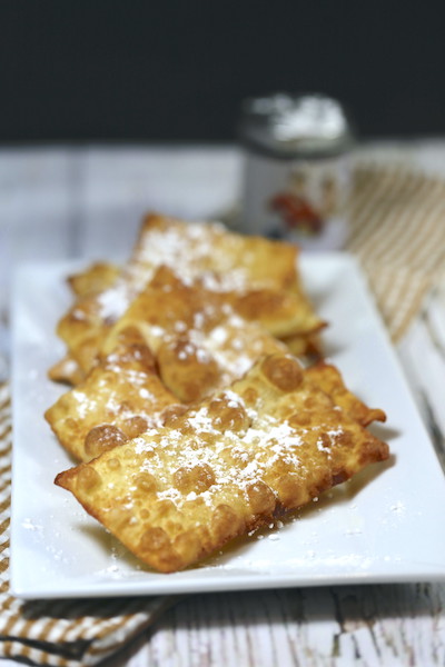 Les égoutter sur un papier absorbant et les saupoudrer de sucre glace.