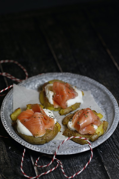 Pommes de terre tapées au saumon fumé